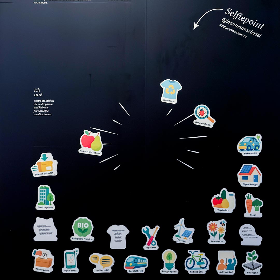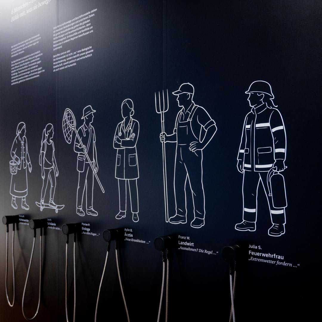 Interaktive Stationen wie ein Drehspiel zu Gewinnern und Verlierern des Klimawandels, Audiobeiträge betroffener Personen und das Paneel „Mein Beitrag!“ laden Besucher*innen dazu ein, sich aktiv mit dem Thema auseinanderzusetzen und den eigenen Handlungsspielraum zu reflektieren.
